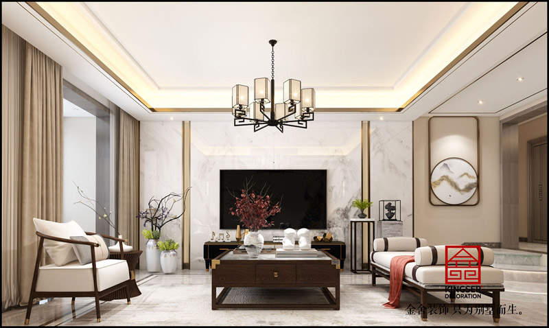 榮盛華府新中式風(fēng)格客廳裝修效果圖