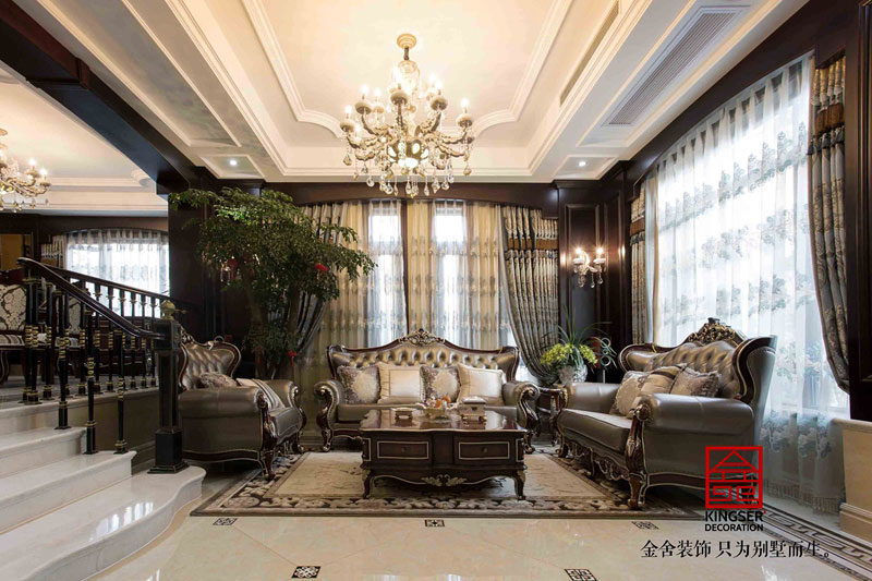 江南新城別墅裝修設(shè)計客廳效果圖