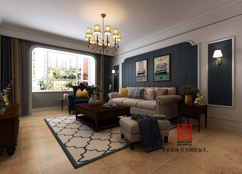 瀚唐二期139平米美式風(fēng)格裝修效果圖