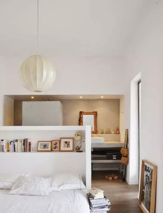在床頭不靠墻的情況下,我們首先需要考慮床頭與墻面之間空間的合理利用 。床頭與墻面間隔一米左右,之間的空間如何更好的 合理利用而不造成浪費呢?其實方法很簡單,現(xiàn)在也越來越流行這樣的設(shè)計,新穎又實用,下面我們一起來看一看。