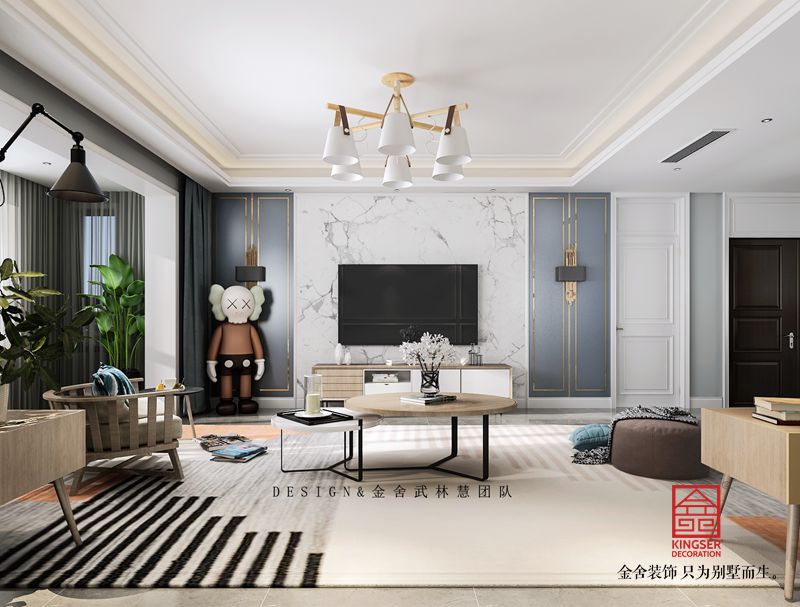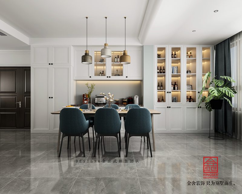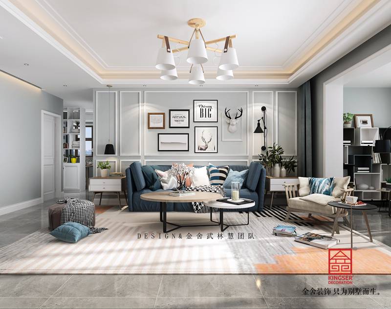 設(shè)計(jì)說明:本案為石家莊金舍裝飾-榮盛華府190平米現(xiàn)代風(fēng)格裝修效果圖。是一套現(xiàn)房住宅,位于榮盛華府,因?yàn)槭沁厬舻淖≌瑧粜图由媳旧順菍悠?,所以整體采光比較好,這也是本案考慮設(shè)計(jì)用色的一個(gè)關(guān)鍵點(diǎn),本案業(yè)主是一位年輕的男士,也是準(zhǔn)備結(jié)婚的婚房。由于工作性質(zhì),很喜歡花藝綠植以及一切跟美好相關(guān)的事物,喜歡的風(fēng)格是簡單的淺灰色調(diào)自然系北歐風(fēng),所以在用色上我們采用了大面積淺灰色調(diào)搭配局部亮色點(diǎn)綴,再加上經(jīng)典的木色系家具沉淀氣質(zhì),他們的小家就這樣應(yīng)運(yùn)而生,我們用最淳樸的藝術(shù)語言,詮釋著屬于他們的專屬幸福。