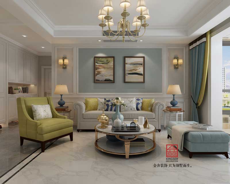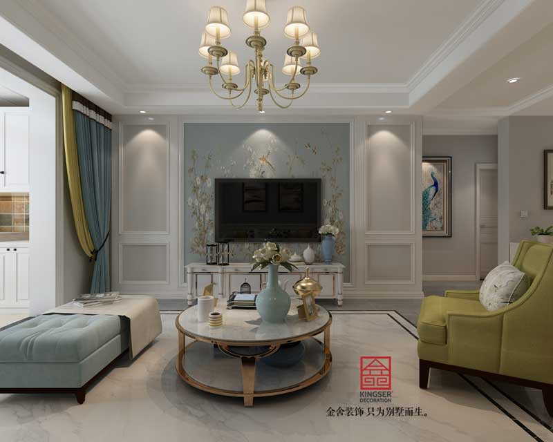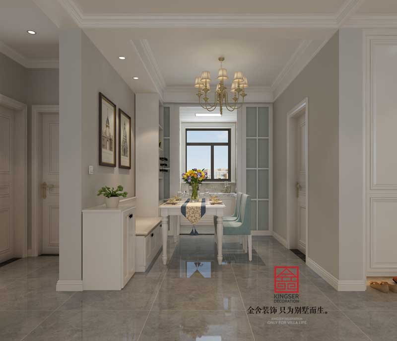 石家莊金舍裝飾-?維多利亞136平米美式風(fēng)格裝修效果圖。美國是一個(gè)崇尚安閑的國家,這也造就了其安閑、隨意的不羈日子方式,沒有太多做作的潤飾與束縛,不經(jīng)意中也成果了其他一種休閑式的浪漫,而美國的文明又是一個(gè)移植文明為主導(dǎo)的頭緒?,F(xiàn)代美式風(fēng)格,尋求綺麗、高雅的古典風(fēng)格。居室色彩主調(diào)為白色。家私為古典彎腿式,家私、門、窗漆成白色。擅用各種花飾、豐厚的木線改動(dòng)、綺麗的窗布帷幄是西式傳統(tǒng)室內(nèi)裝飾的固定方式,空間環(huán)境多表現(xiàn)出華美、綺麗、浪漫的空氣。