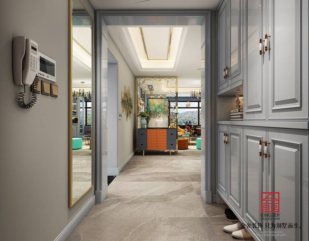 此方案是石家莊裝修公司-健康城160平米美式風(fēng)格裝修效果圖。以美式輕奢定義的一種風(fēng)格,美式輕奢在生活方式上延續(xù)了美式風(fēng)格的輕松自由,又添加了一些當(dāng)代元素。本案在裝飾手法上巧妙的運(yùn)用了啞光的復(fù)古磚,隔斷玫瑰金不銹鋼,簡(jiǎn)單的美式線條等來(lái)提升質(zhì)感。以藍(lán)灰色為主調(diào),超脫凡俗的藍(lán)灰調(diào),將小資情調(diào)流露,彰顯輕奢大氣。入戶玄關(guān)開(kāi)闊明亮,以灰藍(lán)色搭配著深色瓷磚做對(duì)比和呼應(yīng),簡(jiǎn)潔的鋪貼與屋內(nèi)美式輕奢氛圍呼應(yīng)本案例,在看似漫不經(jīng)心卻故意營(yíng)造著一種十分溫和的輕奢表達(dá)。