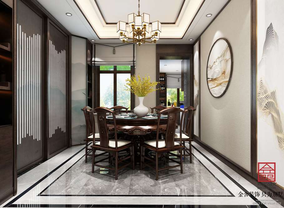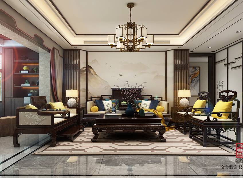 石家莊金舍裝飾-榮盛華府185平米新中式風(fēng)格裝修效果圖。定位為新中式禪意風(fēng)格,本方案的設(shè)計(jì)哲學(xué)是給人一種靜謐、平和、舒緩的感覺,新中式設(shè)計(jì)追求的是一種清新高雅的格調(diào),注重文化積淀,講究雅致意境。以簡(jiǎn)樸、舒適、隨意的特點(diǎn)給人很強(qiáng)的吸引力,搭配著新中式的紅木家具,為生活營(yíng)造出一個(gè)寧?kù)o、安逸、平和的風(fēng)格。既繼承了傳統(tǒng)中式風(fēng)格的固有理念和元素,又有現(xiàn)代設(shè)計(jì)理念的創(chuàng)新以及現(xiàn)代工藝的運(yùn)用。當(dāng)走進(jìn)禪意新中式設(shè)計(jì)的房間,仿若走進(jìn)了另外一種生活狀態(tài)。新中式的圈椅沙發(fā),簡(jiǎn)單大方的茶幾。讓人好不愜意。這種表現(xiàn)能夠完整地體現(xiàn)出居住人追求品質(zhì)、典雅生活,視生活為藝術(shù)的人生態(tài)度。