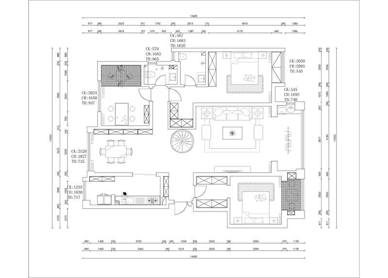 各個空間戶型方正,后期空間利用率高;整個空間全明通透,采光良好,同時利于居住空間通風;從臥室進衛(wèi)生間需要穿過餐廳或客廳;客廳、臥室、衛(wèi)生間和廚房等主要功能間的尺寸以及比例適中,有利于采光和通風,居住起來舒適、方便