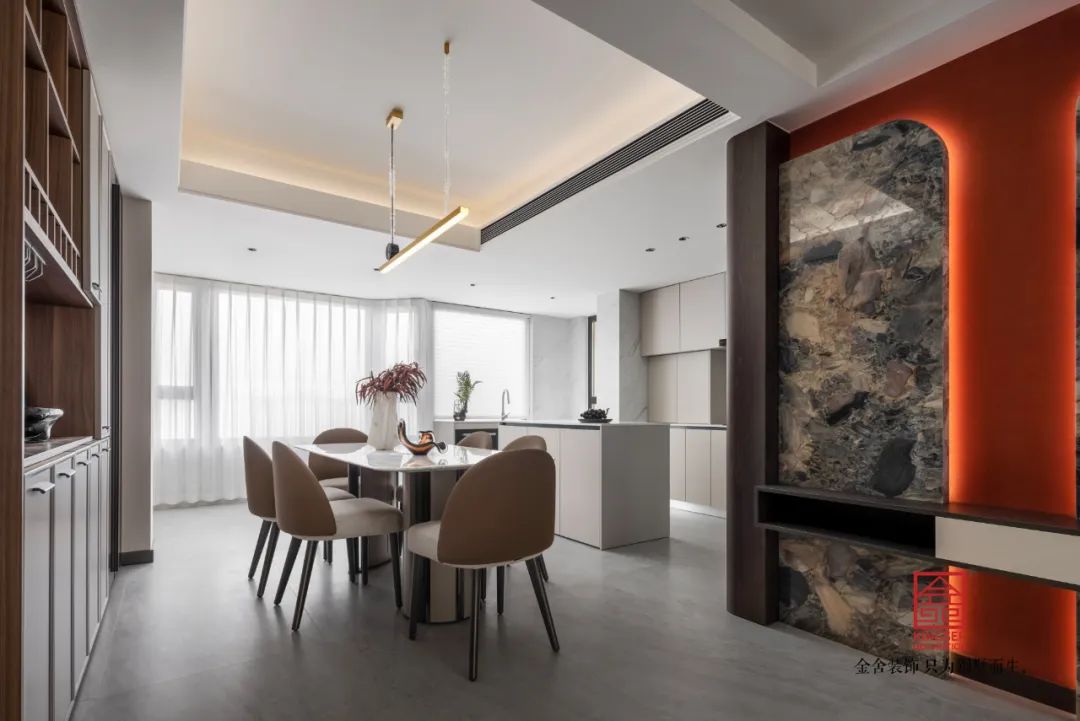 開放式廚房與餐廳融為一體,整體素色的色調(diào),營造出一種靜謐而溫馨的氛圍。在這里,時(shí)光似乎變得緩慢而寧靜。一食之間,仿佛跨越了歲月的長河,讓人品味到了歷史的韻味和文化的傳承。
