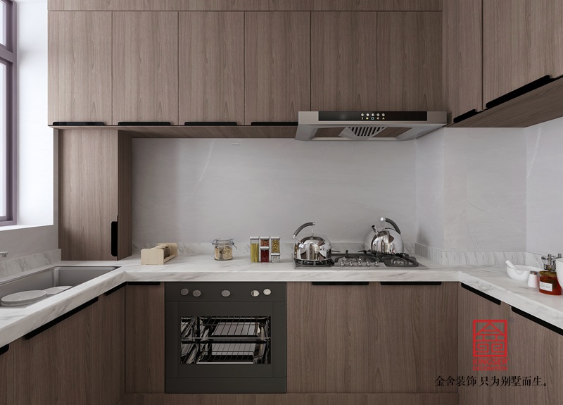餐廳作為廚房與客廳的連接,在色調(diào)和材料的使用上,保持了空間的連貫性。餐廳+廚房一體式空間,大大增加了使用面積,在色調(diào)上,以白色,木色,為主,呈現(xiàn)明亮,營(yíng)造簡(jiǎn)約又自然的舒適感。同時(shí),吊燈與地面恰到好處的相呼應(yīng),變化中不失統(tǒng)一,使整個(gè)空間的冷暖達(dá)到平衡。