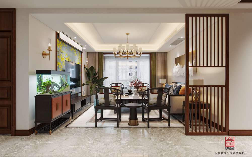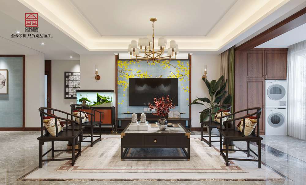 此案為金舍裝飾-維多利亞186平米新中式風格裝修效果圖。定位為新中式裝修風格,布局上遵循了中式風格中對稱的布局方式,講究空間的層次感和沉穩(wěn)感。整體色彩以米黃色為主,去營造一種溫馨舒適但不沉悶的氛圍感。