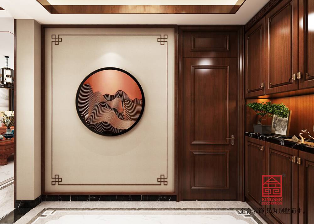 設(shè)計說明:本案為石家莊金舍裝飾-維多利亞三期166平米中式風(fēng)格裝修效果圖。風(fēng)格定義為中式風(fēng)格,中式風(fēng)格非常講究空間的層次感,在需要隔絕視線的地方,則使用中式的屏風(fēng)、中式木門、工藝隔斷、簡約化的中式“博古架”,通過這種新的分隔方式,展現(xiàn)出中式家居的層次之美,客餐廳空間添加了中式山水畫祥云圖案元素,使整體空間感覺更加豐富,大而不空、厚而不重,有格調(diào)又不顯壓抑。