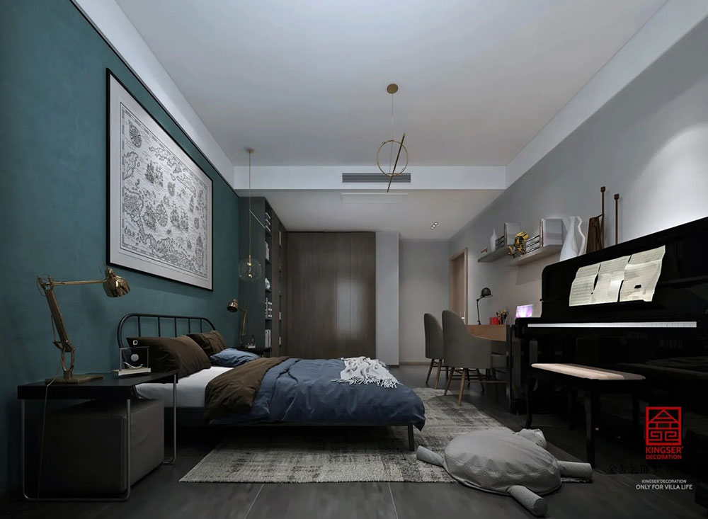 本案是金舍裝飾-榮盛華府178平米現(xiàn)代簡約風(fēng)格裝修效果圖。做減法的臥室設(shè)計(jì)。在“斷舍離”思想繁盛的今天,減法設(shè)計(jì)用最簡潔設(shè)計(jì)表達(dá)最核心實(shí)用性。
