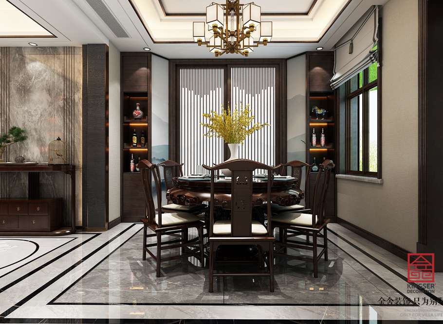 石家莊金舍裝飾-榮盛華府185平米新中式風(fēng)格裝修效果圖。定位為新中式禪意風(fēng)格,本方案的設(shè)計(jì)哲學(xué)是給人一種靜謐、平和、舒緩的感覺,新中式設(shè)計(jì)追求的是一種清新高雅的格調(diào),注重文化積淀,講究雅致意境。以簡(jiǎn)樸、舒適、隨意的特點(diǎn)給人很強(qiáng)的吸引力,搭配著新中式的紅木家具,為生活營(yíng)造出一個(gè)寧?kù)o、安逸、平和的風(fēng)格。既繼承了傳統(tǒng)中式風(fēng)格的固有理念和元素,又有現(xiàn)代設(shè)計(jì)理念的創(chuàng)新以及現(xiàn)代工藝的運(yùn)用。當(dāng)走進(jìn)禪意新中式設(shè)計(jì)的房間,仿若走進(jìn)了另外一種生活狀態(tài)。新中式的圈椅沙發(fā),簡(jiǎn)單大方的茶幾。讓人好不愜意。這種表現(xiàn)能夠完整地體現(xiàn)出居住人追求品質(zhì)、典雅生活,視生活為藝術(shù)的人生態(tài)度。