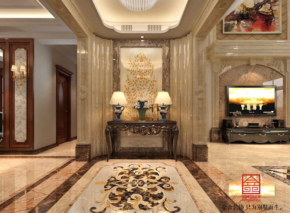 設(shè)計(jì)說(shuō)明:此案例為石家莊裝修公司-香邑瀾山270平米歐式風(fēng)格裝修效果圖。歐式風(fēng)格強(qiáng)調(diào)以華麗的裝飾、濃烈的色彩、精美的造型達(dá)到華貴的裝飾效果。歐式客廳頂部用大型燈池,并用華麗的枝形吊燈營(yíng)造氣氛。門(mén)窗上半部做成弧形,并用帶有花紋的石膏線勾邊,室內(nèi)則有壁燈造型。墻面用優(yōu)質(zhì)乳膠漆,以襯托豪華效果。