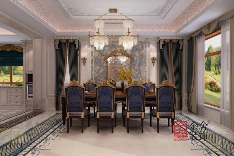 餐廳在細(xì)節(jié)的邊緣和花卉中點(diǎn)綴了金光閃閃的金色,讓整個(gè)空間熠熠生輝。同時(shí)在餐廳的餐桌還是餐邊鏡還是家居構(gòu)設(shè),每一處的設(shè)計(jì),都經(jīng)過(guò)設(shè)計(jì)的精細(xì)打磨,因此,能夠在實(shí)景中裝飾出完整純正的法式風(fēng)范。