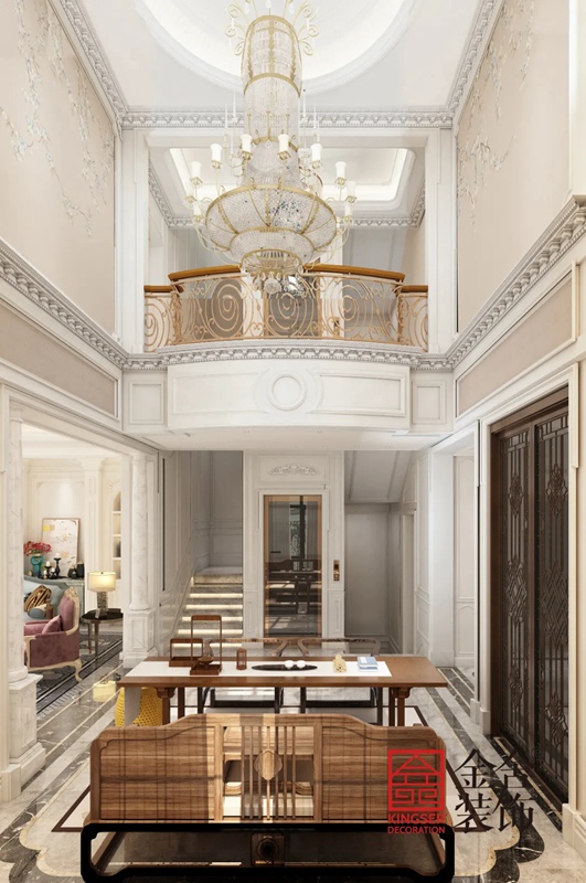 此案例為石家莊金舍裝飾-原河名墅600平米法式風(fēng)格裝修效果圖。法式風(fēng)格往往不求簡(jiǎn)單的協(xié)調(diào),而是崇尚沖突之美。在設(shè)計(jì)上講求心靈的自然回歸感,給人一種撲面而來(lái)的濃郁氣息。同時(shí)法式風(fēng)格裝修彰顯出法國(guó)人對(duì)美的追求,特別是細(xì)節(jié)的處理,大量運(yùn)用廊柱、雕花、線條等來(lái)提升裝飾效果,并采用精細(xì)的施工工藝,表達(dá)出法國(guó)人獨(dú)特的浪漫情懷。