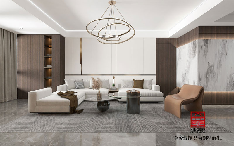 別墅裝修設(shè)計(jì),從當(dāng)代藝術(shù)的特點(diǎn)出發(fā),以山水人間,閑逸寧?kù)o作為風(fēng)格理念,塑造出富有東方文化的現(xiàn)代空間,將靜怡雅致的氣息引入室內(nèi)。