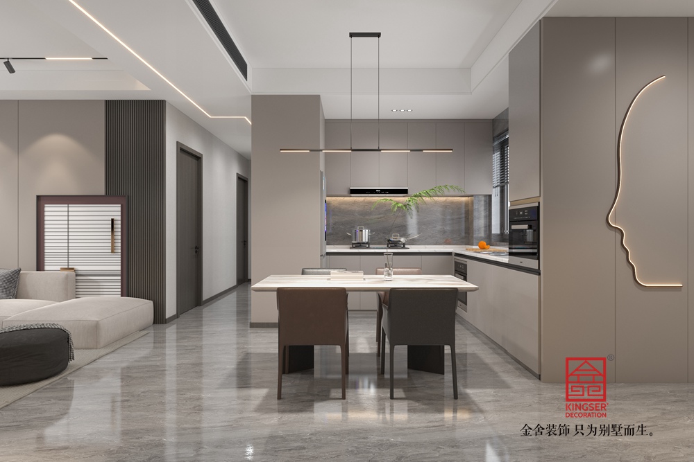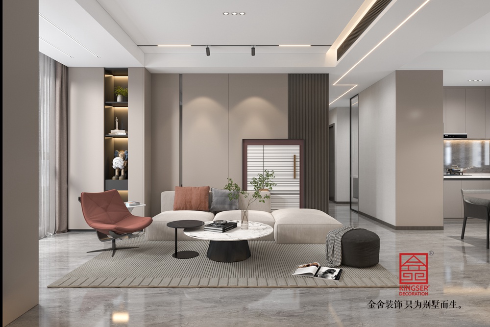 本客廳設(shè)計(jì)以現(xiàn)代簡(jiǎn)約風(fēng)格為主,融入輕奢元素??臻g運(yùn)用米白、淺棕等柔和色調(diào),營(yíng)造出寧?kù)o舒適的氛圍。墻面采用簡(jiǎn)潔的板材與線條設(shè)計(jì),搭配嵌入式燈光,增強(qiáng)層次感與溫馨感。