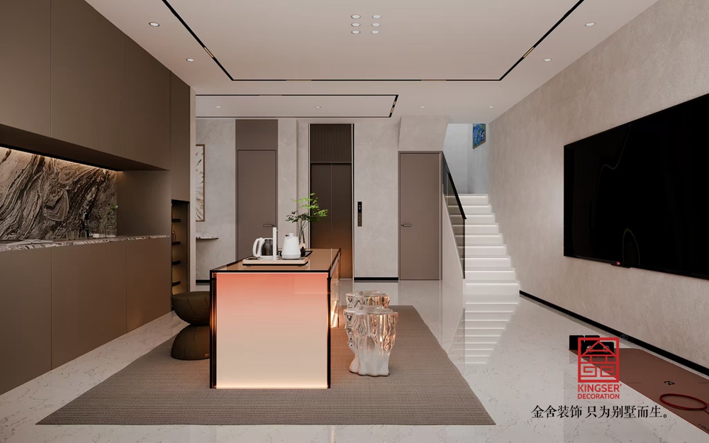 設計說明:該客廳以 “極簡美學與輕奢質感的共生” 為設計理念,從空間布局、材質運用到細節(jié)塑造,展現(xiàn)出別墅生活的雅致與舒適。
