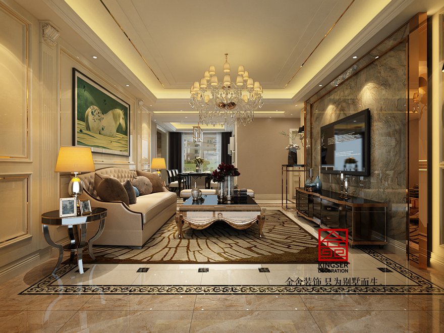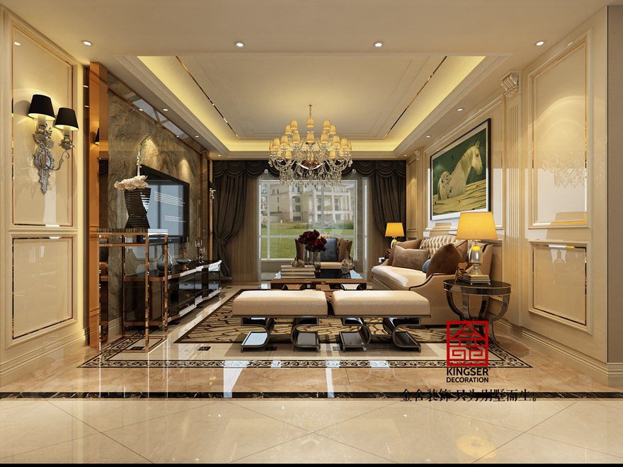 設(shè)計(jì)說明:此案例為石家莊金舍裝飾-中冶德賢公館160平米簡(jiǎn)歐風(fēng)格裝修效果圖。簡(jiǎn)歐風(fēng)格從簡(jiǎn)單到繁雜、從整體到局部,精雕細(xì)琢,鑲花刻金都給人一絲不茍的印象。一方面保留了材質(zhì)、色彩的大致風(fēng)格,仍然可以很強(qiáng)烈地感受傳統(tǒng)的歷史痕跡與渾厚的文化底蘊(yùn),同時(shí)又摒棄了過于復(fù)雜的肌理和裝飾,簡(jiǎn)化了線條。但綜合上而言就是結(jié)構(gòu)上的對(duì)稱性,造型上多以圓和方為主,裝修材料多以精細(xì)和貴氣為主。